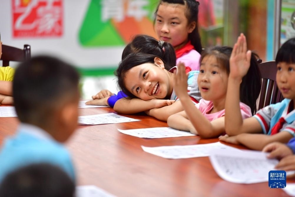 在廣西柳州市融水苗族自治縣易地扶貧搬遷安置小區(qū)苗家小鎮(zhèn)青年之家“六點小課堂”,孩子們參與興趣活動(2022年5月5日攝)。近年來,廣西柳州市融水苗族自治縣團縣委在易地扶貧搬遷安置小區(qū)苗家小鎮(zhèn)、苗美社區(qū)開設(shè)青年之家“六點小課堂”,定期組織青年志愿者,為這里的青少年開展功課輔導、自護教育、科技小課堂等活動。新華社記者 黃孝邦 攝