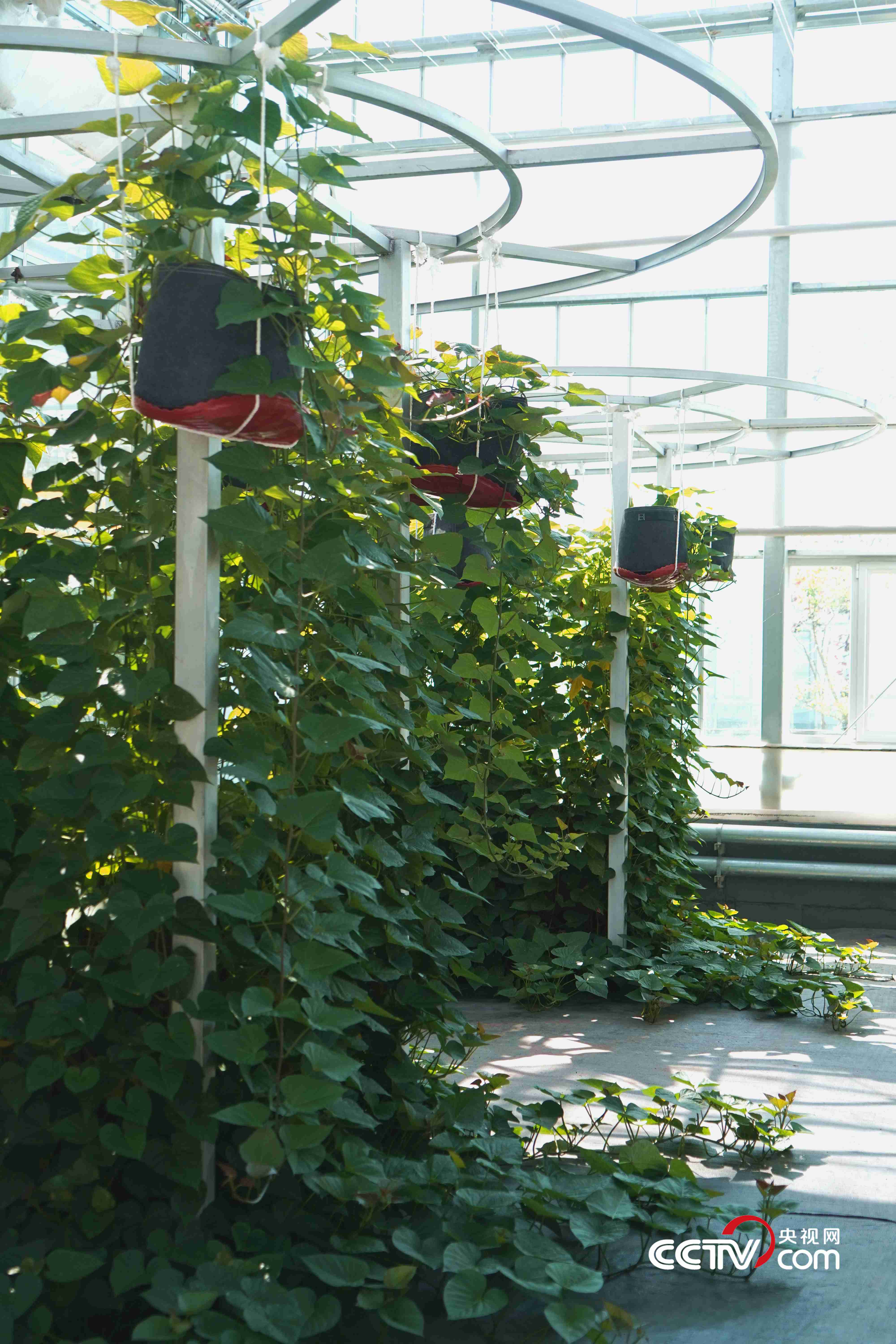 空中紅薯則利用深液流栽培模式,將紅薯由傳統(tǒng)的土壤栽培轉(zhuǎn)變?yōu)樗耘嗟哪J?。陸璐表示,其特點(diǎn)體現(xiàn)在水生根系能為植株提供充足的水肥,壓蔓產(chǎn)生的不定根成為儲(chǔ)藏根,實(shí)現(xiàn)了根系的分工合作,能夠達(dá)到一年種植多年采收的效果?!皳?jù)測(cè)算,單株冠幅在60平方米的‘紅薯樹(shù)’一年可產(chǎn)1200多斤的紅薯?!边@種栽培模式不僅能帶來(lái)經(jīng)濟(jì)效益,在農(nóng)業(yè)觀光、科普教育方面也有獨(dú)特價(jià)值。