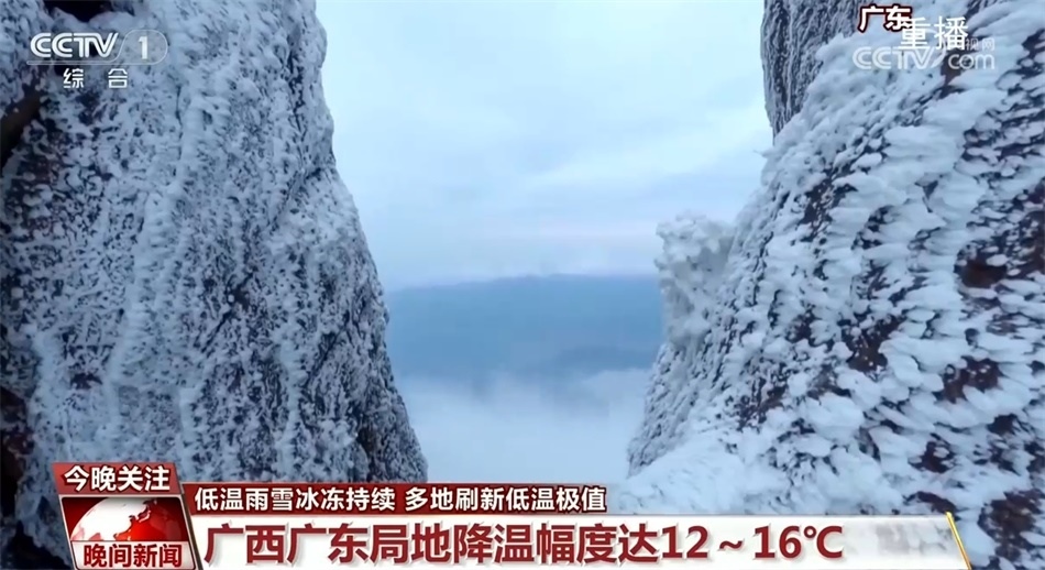 下雪區(qū)域也在向南擴(kuò)展。12月16日—12月17日,廣西西南部、廣東南部沿海局地降溫幅度達(dá)12~16℃。受強(qiáng)冷空氣影響,16日起廣西出現(xiàn)強(qiáng)寒潮天氣,截至17日早上8點(diǎn),強(qiáng)寒潮已致廣西11條35千伏及以上線路覆冰,廣西電力部門已啟動(dòng)今冬首輪融冰,全力保障電網(wǎng)供電安全。12月16日,廣西柳州部分高寒山區(qū)還迎來(lái)今冬首場(chǎng)降雪,廣西大明山也出現(xiàn)小范圍霧凇。預(yù)計(jì)17日—19日,大明山最低氣溫將降至零下2℃。