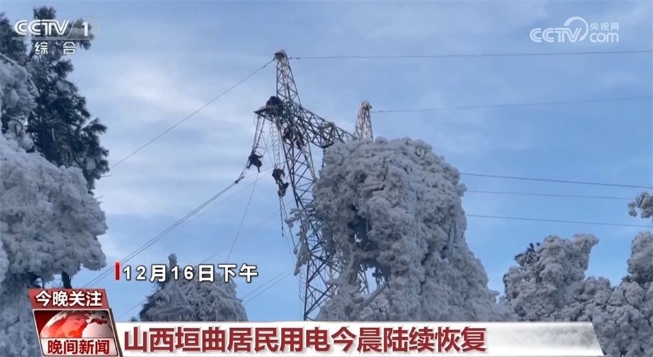 寒冬里,有人選擇向寒風(fēng)逆行,用自己的堅(jiān)守給千家萬(wàn)戶送去溫暖。13日傍晚,受降雪降溫天氣影響,山西省運(yùn)城市垣曲縣的4條輸電線路發(fā)生故障,導(dǎo)致全縣停電。經(jīng)過(guò)70多個(gè)小時(shí)搶修,截至12月17日7點(diǎn),受雨雪冰凍災(zāi)害影響的山西12座變電站已全部恢復(fù)供電,垣曲當(dāng)?shù)鼐用裼秒娨仓鸩交謴?fù)。