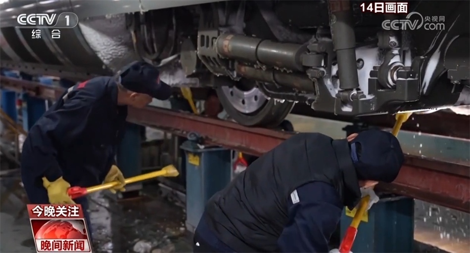 先除冰,再檢測(cè),列車檢修員們化身雪夜除冰人,一列車下來(lái)最快要半個(gè)小時(shí),如果趕上冰層厚的列車則需要三個(gè)小時(shí)。