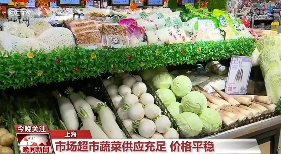強(qiáng)冷空氣來(lái)襲,上海各菜場(chǎng)、超市和批發(fā)市場(chǎng)的商家們多措并舉,全力保供穩(wěn)價(jià)。在上海市金沙江路上的一家超市里,記者看到,五顏六色的蔬菜水果堆滿貨架,品種豐富,價(jià)格也比較穩(wěn)定。