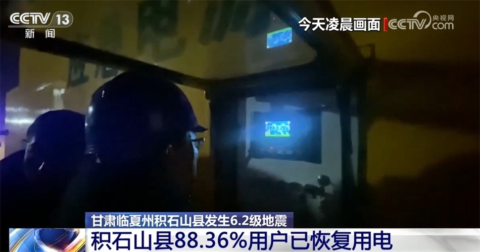 國家電網(wǎng)公司甘肅省電力公司第一時間啟動地震應(yīng)急響應(yīng),共計派出18支應(yīng)急搶修隊伍、11輛發(fā)電車、15臺發(fā)電機參與現(xiàn)場搶修。截至目前,2條35千伏線路已全部恢復送電,12條10千伏線路主線恢復,部分分支分段正在加緊搶修,已對積石山縣88.36%的用戶恢復供電。