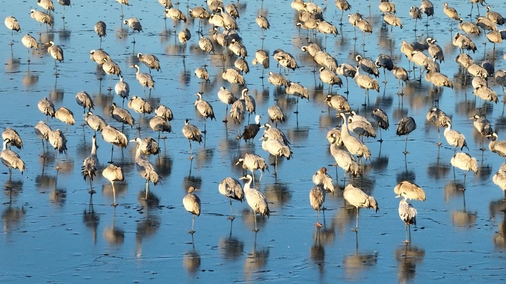 “12月初開始,鶴群陸續(xù)飛臨衡水湖。目前正處于候鳥越冬期,已有60余種、5萬余只候鳥飛到衡水湖越冬。”衡水湖國家級自然保護(hù)區(qū)資源保護(hù)局濕地生態(tài)監(jiān)測科科長張余廣說。