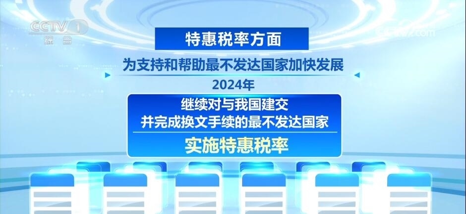 此外,在特惠稅率方面,為支持和幫助最不發(fā)達(dá)國家加快發(fā)展,2024年繼續(xù)對與我國建交并完成換文手續(xù)的最不發(fā)達(dá)國家實(shí)施特惠稅率。