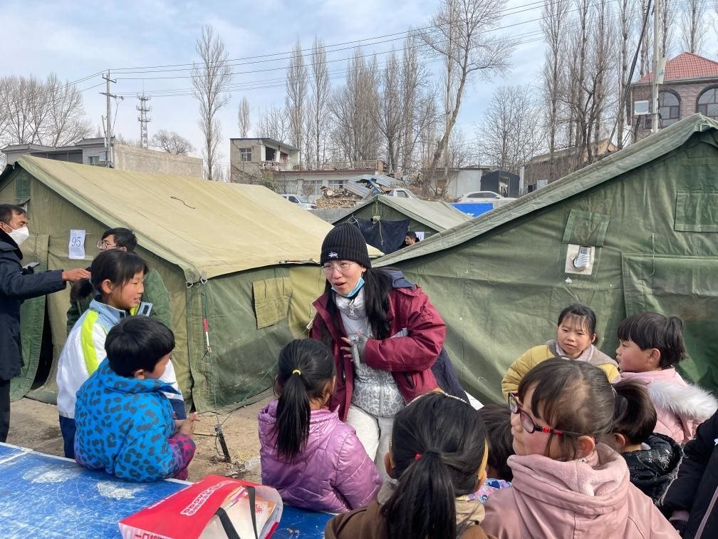 21日上午,馮小霞和24名同伴就從與積石山縣毗鄰的廣河縣抵達(dá)災(zāi)區(qū),開展志愿服務(wù)。地震發(fā)生后,和馮小霞類似,來(lái)自多地的志愿者化身“帳篷城”里的“孩子王”,為大家開設(shè)了繪畫、文化課程輔導(dǎo)、防災(zāi)救災(zāi)知識(shí)等內(nèi)容的志愿服務(wù)。