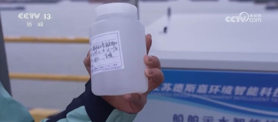 您看,這會在江面上不少大貨船旁都有一艘小船緊挨著它,這艘小船是污染物集中接收船,就相當于長江上的“垃圾回收站”,連接兩艘船的管道后,船上生活污水即可被回收到接收裝置中。您看,我手里這杯清澈的水就是集中處理后的污水,目前達到了一級A類的標準,也將會被重新直排回長江。?