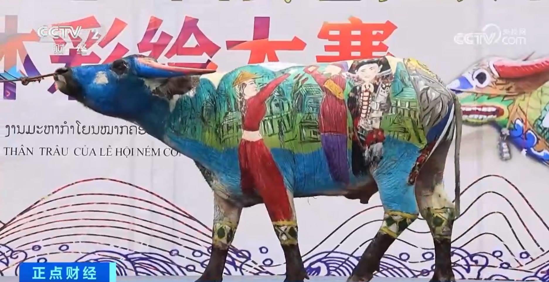 牛體彩繪源于當(dāng)?shù)孛耖g,并得到廣泛流傳,其初衷是在牛身上涂上顏色以威懾猛獸。如今,牛體彩繪被賦予了新的寓意。每當(dāng)歲末年初,中老越三國(guó)邊民都會(huì)把牛裝扮一新,感謝牛的辛勤勞作,期待新的一年五谷豐登。