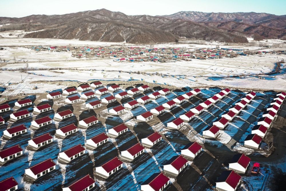 吉林省舒蘭市開原鎮(zhèn)新開村異地重建的新房(12月7日攝,無人機照片)。新華社記者 許暢 攝