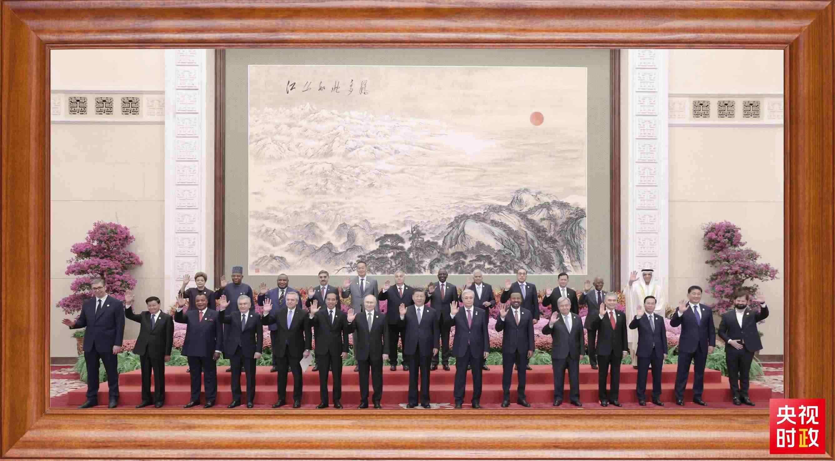 2023年10月18日,習(xí)近平主席在北京人民大會堂出席第三屆“一帶一路”國際合作高峰論壇開幕式。會前,習(xí)近平同出席高峰論壇的外國國家元首、政府首腦和國際組織負(fù)責(zé)人等國際貴賓集體合影。