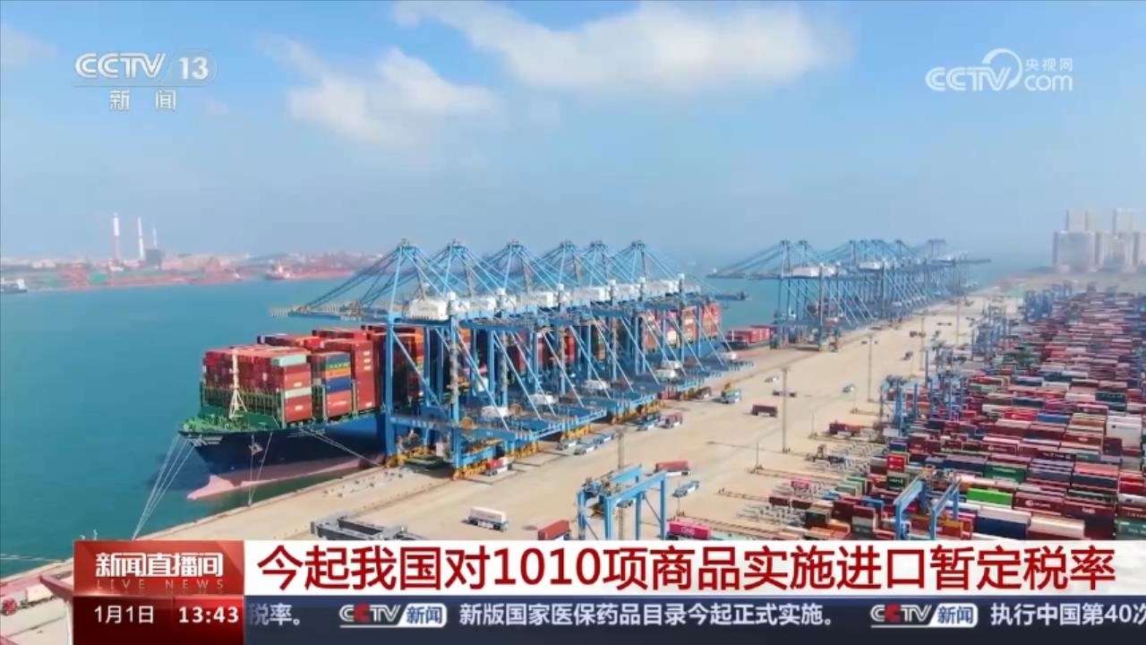 央視網(wǎng)消息:為增強(qiáng)國內(nèi)國際兩個(gè)市場、兩種資源聯(lián)動(dòng)效應(yīng),維護(hù)我國產(chǎn)業(yè)鏈、供應(yīng)鏈穩(wěn)定順暢,1月1日起,我國對1010項(xiàng)商品實(shí)施低于最惠國稅率的進(jìn)口暫定稅率。
