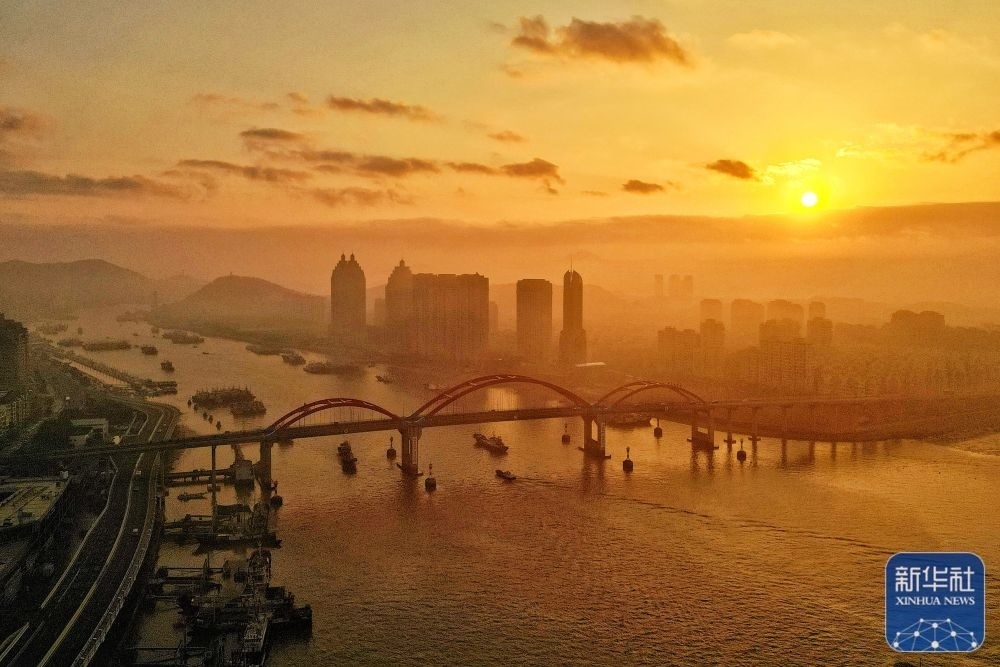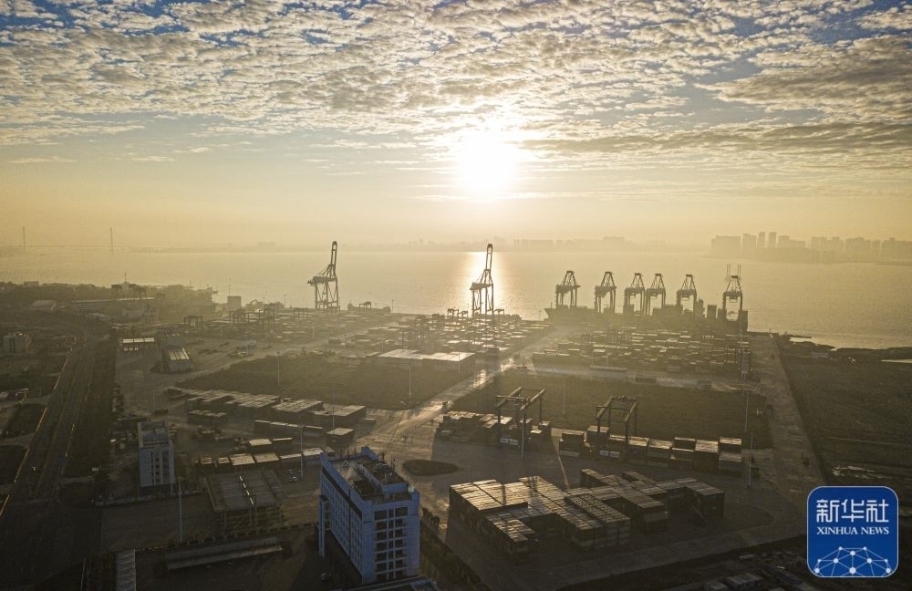 這是1月1日在海南自貿港重點園區(qū)——洋浦經濟開發(fā)區(qū)拍攝的晨光(無人機照片)。新華社記者 蒲曉旭 攝