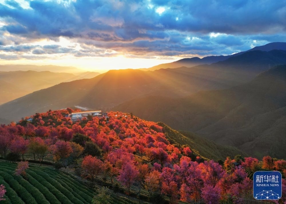 1月1日,位于云南省大理白族自治州南澗彝族自治縣的無量山櫻花谷迎來2024年第一縷陽光(無人機照片)。新華社發(fā)(適志宏 攝)