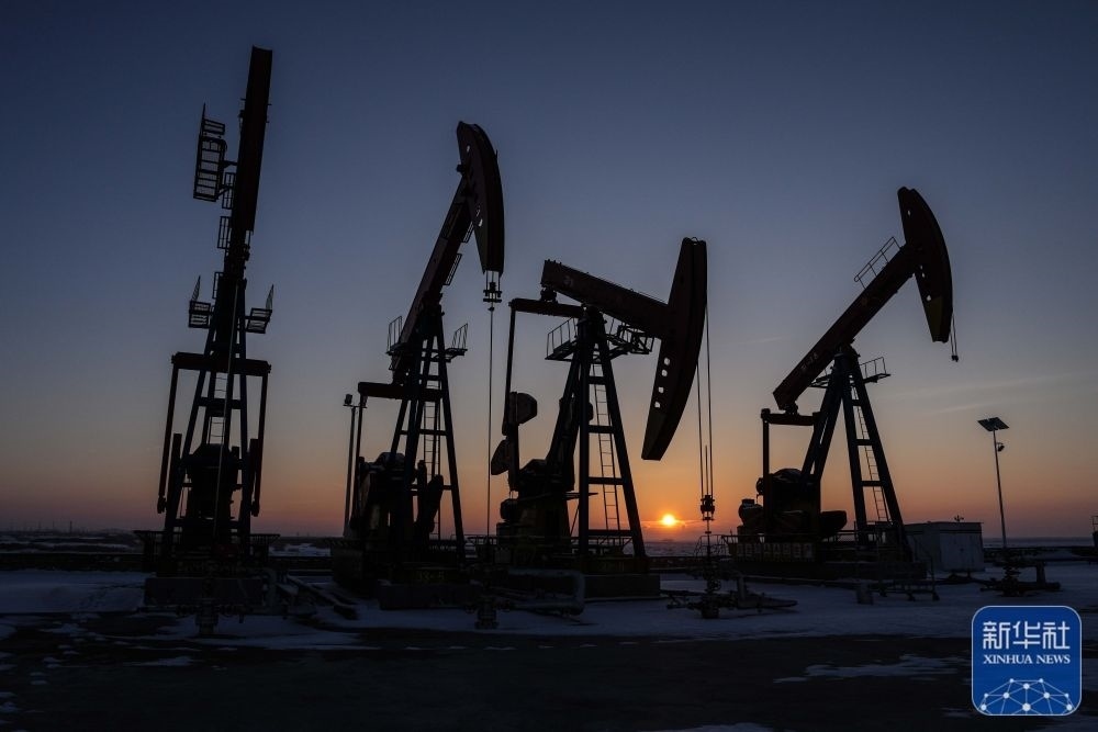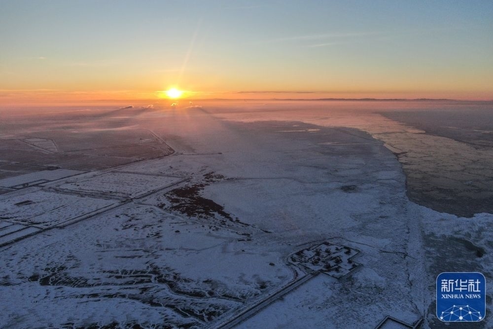 這是1月1日在遼寧省盤錦市中國石油遼河油田拍攝的日出(無人機照片)。新華社記者 潘昱龍 攝