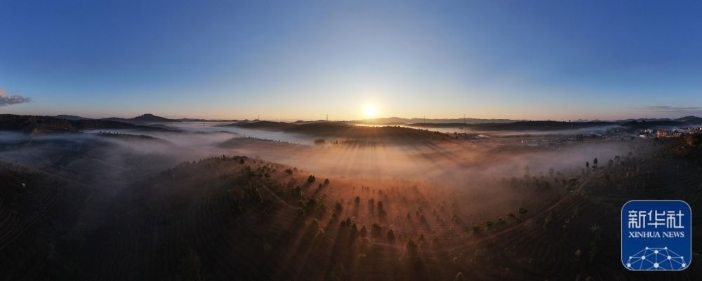 1月1日,云南省景洪市萬畝茶園沐浴在新年的陽光中(無人機全景照片)。新華社發(fā)(李云生 攝)