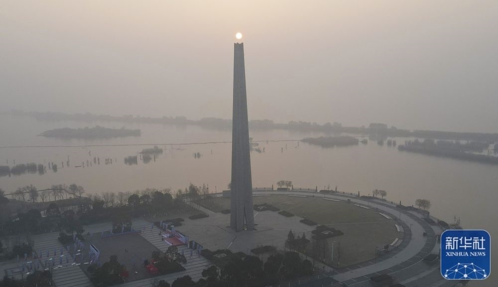 這是1月1日在安徽省合肥市渡江戰(zhàn)役紀念館附近拍攝的晨光(無人機照片)。新華社記者 周牧 攝