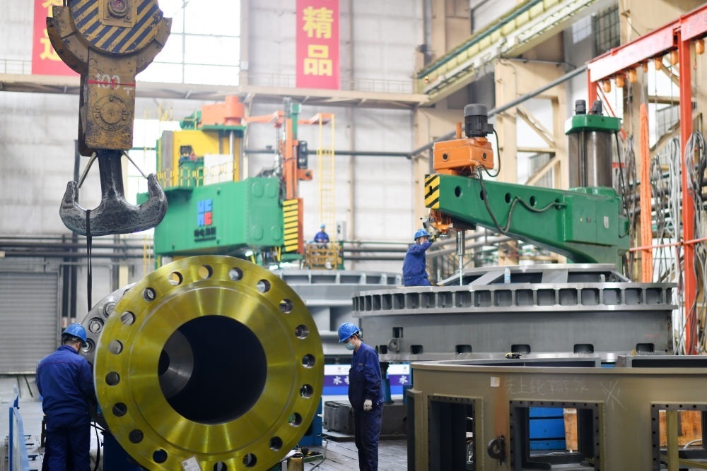 工人在哈電集團(tuán)哈爾濱鍋爐廠有限責(zé)任公司生產(chǎn)車間作業(yè)(2023年4月12日攝)。新華社記者 王建威 攝