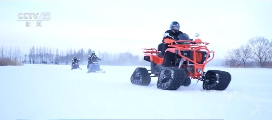 在同江市,當(dāng)?shù)匾惶幯┑啬ν性囻{現(xiàn)場,機(jī)車轟鳴,四臺最新研發(fā)的雪地摩托是專門為冬季雪地旅行和娛樂而設(shè)計的機(jī)動車輛。