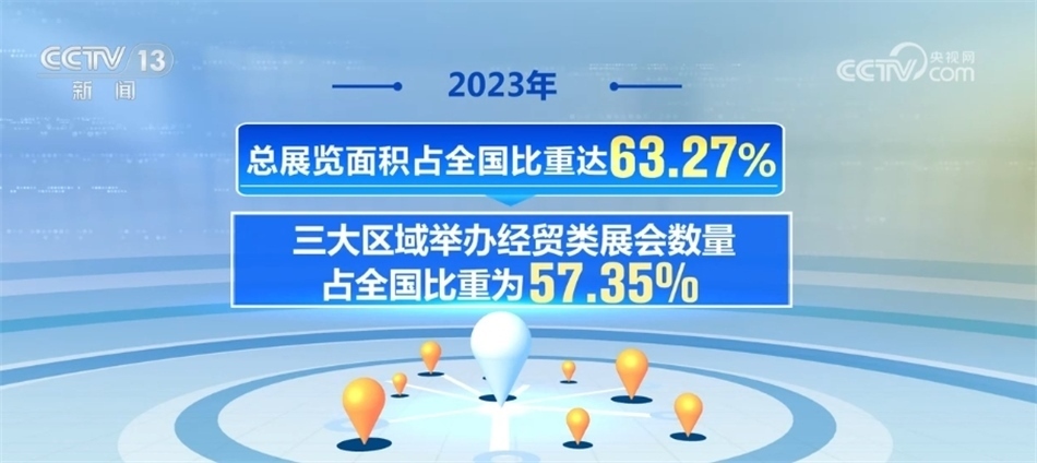 中國(guó)貿(mào)促會(huì)展覽管理部部長(zhǎng) 鄔勝榮:從區(qū)域分布來(lái)看,展會(huì)分布呈現(xiàn)明顯的區(qū)域性特征,東部地區(qū)舉辦經(jīng)貿(mào)類展覽項(xiàng)目、數(shù)量和面積均領(lǐng)跑全國(guó),全國(guó)占比分別為68.26%和73.53%。