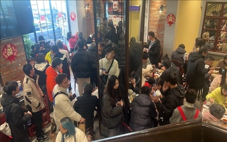 近日,上海黃浦區(qū)云南路鮮得來總店客流量暴增。人們紛紛來品嘗劇中爆火的排骨年糕。