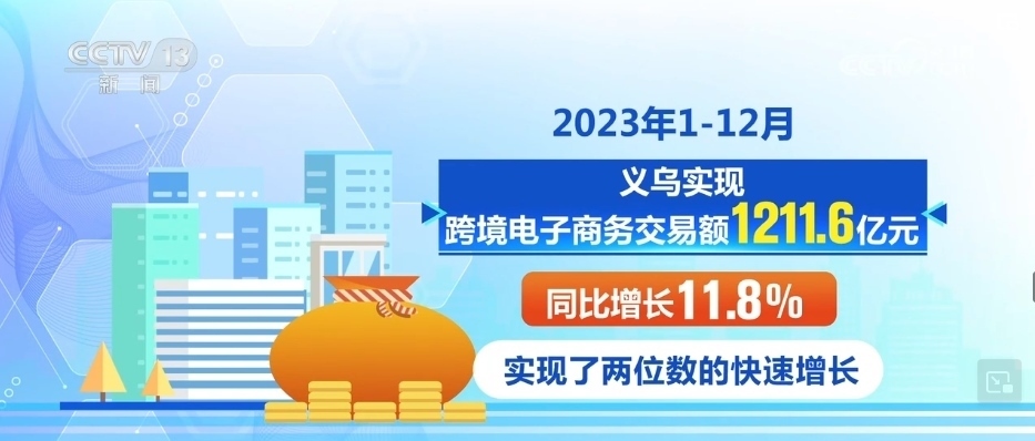 2023年1—12月,義烏實(shí)現(xiàn)跨境電子商務(wù)交易額1211.6億元,同比增長(zhǎng)11.8%,實(shí)現(xiàn)了兩位數(shù)的快速增長(zhǎng)。