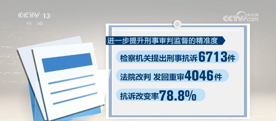 進(jìn)一步提升刑事審判監(jiān)督的精準(zhǔn)度,檢察機(jī)關(guān)提出刑事抗訴6713件,法院改判、發(fā)回重審4046件,抗訴改變率78.8%。同時(shí),檢察機(jī)關(guān)深化“派駐+巡回”檢察工作,對(duì)不當(dāng)減刑、假釋、暫予監(jiān)外執(zhí)行共提出糾正意見(jiàn)1.8萬(wàn)人。