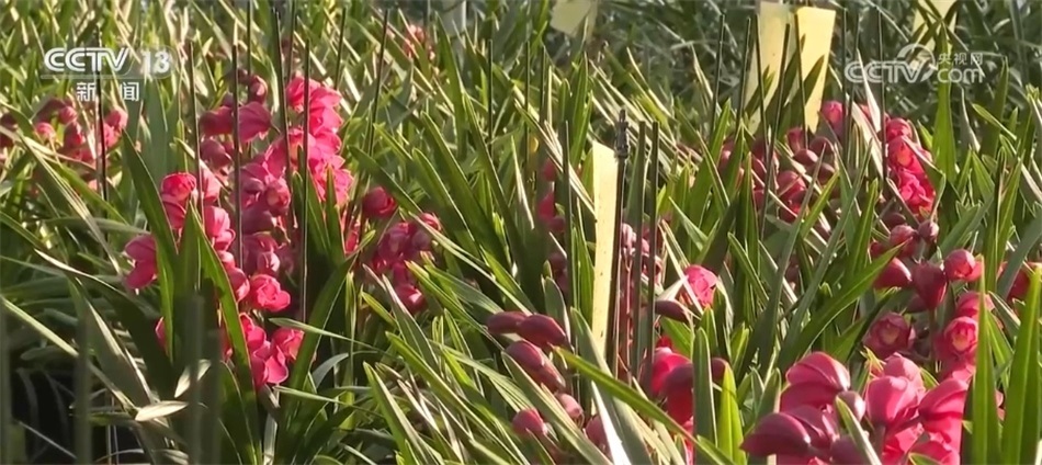 在云南,不同類型的年宵花也開始大量上市。在玉溪江川區(qū)九溪鎮(zhèn)的花卉大棚里,整齊擺放的大花蕙蘭競相開放。大花蕙蘭可單獨(dú)擺放,也可制作成胸花等小型花藝,特別是瓶插期長達(dá)45天,成為這段時間的暢銷花。