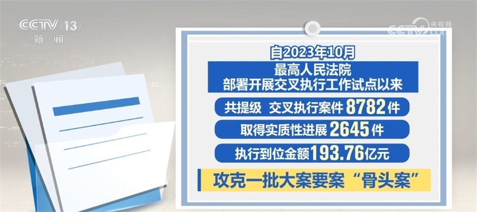 最高人民法院介紹,執(zhí)行難中常見被執(zhí)行人是當(dāng)?shù)刂匾髽I(yè)、納稅大戶,甚至是重點國企或行政部門等情況。交叉執(zhí)行就是要讓接受指定的法院在不受牽絆、沒有包袱、完全依法自主的條件下力推案件執(zhí)行。據(jù)統(tǒng)計,開展交叉執(zhí)行工作試點以來,共提級、交叉執(zhí)行案件8782件,取得實質(zhì)性進展2645件,執(zhí)行到位金額193.76億元,攻克了一批大案要案“骨頭案”。最高人民法院要求,上級法院發(fā)現(xiàn)原執(zhí)行法院存在消極執(zhí)行、拖延執(zhí)行等執(zhí)行不力情形,發(fā)現(xiàn)違紀(jì)違法問題線索的,應(yīng)當(dāng)嚴(yán)肅依紀(jì)依法查處、追究責(zé)任。