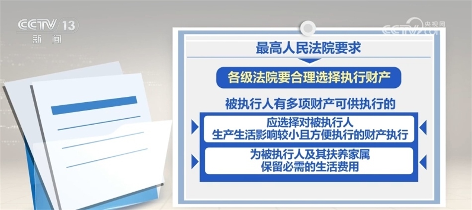 最高人民法院要求,各級法院要合理選擇執(zhí)行財產(chǎn),被執(zhí)行人有多項財產(chǎn)可供執(zhí)行的,應(yīng)選擇對被執(zhí)行人生產(chǎn)生活影響較小且方便執(zhí)行的財產(chǎn)執(zhí)行,同時,為被執(zhí)行人及其扶養(yǎng)家屬保留必需的生活費用。對涉及企業(yè)尤其是民營企業(yè)的,要嚴(yán)格區(qū)分企業(yè)法人財產(chǎn)與股東個人財產(chǎn),嚴(yán)禁違法查封案外人財產(chǎn),嚴(yán)禁對不得查封的財產(chǎn)采取執(zhí)行措施,堅決杜絕超標(biāo)的查封,切實保護民營企業(yè)等企業(yè)法人、企業(yè)家和各類市場主體合法權(quán)益。