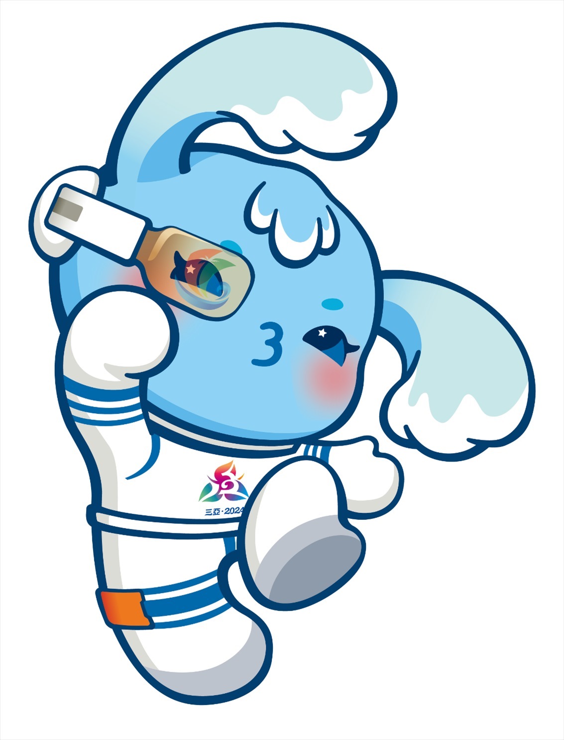 吉祥物由清華大學美術學院團隊創(chuàng)作完成。吉祥物“吉貝”是一只海精靈,名字取自《尚書·禹貢》和蘇東坡的詩詞,在歷史上專指“黎錦”這一中華民族優(yōu)秀傳統(tǒng)文化的典型代表,黎錦也是世界級非物質文化遺產,同時“吉貝”也有“吉祥寶貝”的意思;海精靈身著宇航服,寓意星辰大海,佩戴的AI智能眼鏡中映射出海南自由貿易港的標志,寓意科技與現代化。海精靈展現了中華民族團結奮斗、揚帆征程,攜手邁向中國式現代化的精氣神。