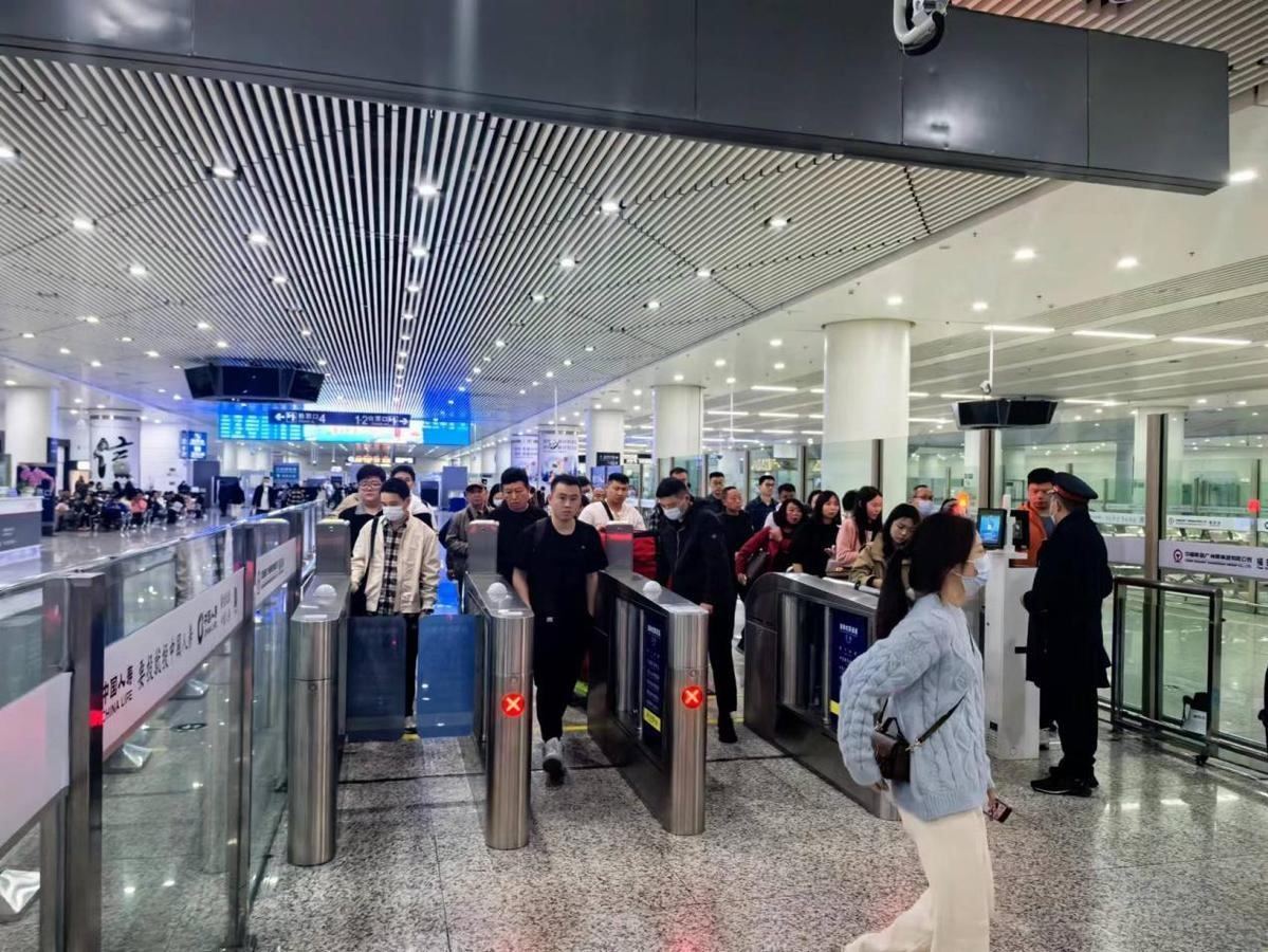 福田站旅客正排隊(duì)通過(guò)進(jìn)站閘機(jī)口。 (攝影:戴林)