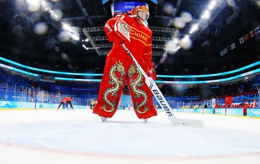 △北京冬奧會上,女子冰球門將周嘉鷹穿著中國龍護(hù)具。