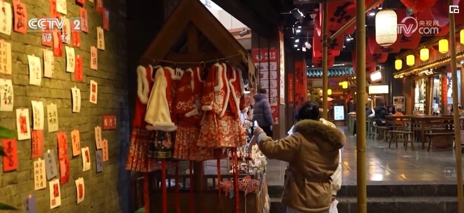 在中國人的習(xí)俗中,過年少不了趕集。長沙在宋朝時(shí)被稱作潭州,是重要的商業(yè)中心之一。在宋風(fēng)市井文化體驗(yàn)地潭州市集,春聯(lián)、龍燈等裝飾,吸引了不少游客。
