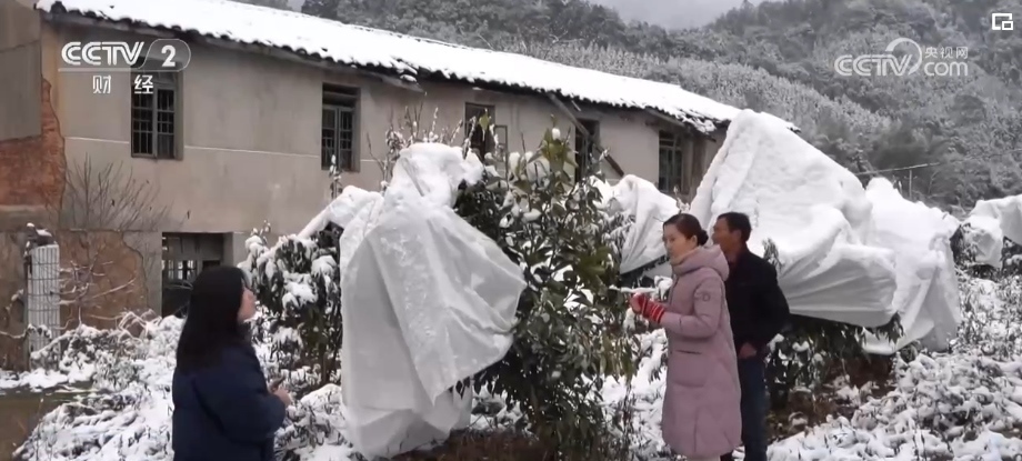 受冷空氣影響,近段時(shí)間,福建三明市溫度持續(xù)走低。在將樂縣漠源鄉(xiāng),3萬多株西柚果樹被大雪覆蓋,容易造成果樹枝條壓彎折斷,出現(xiàn)局部凍害。當(dāng)?shù)亟M織人員到現(xiàn)場指導(dǎo)企業(yè)做好防寒防凍工作,保障果樹安全度過本輪寒潮。