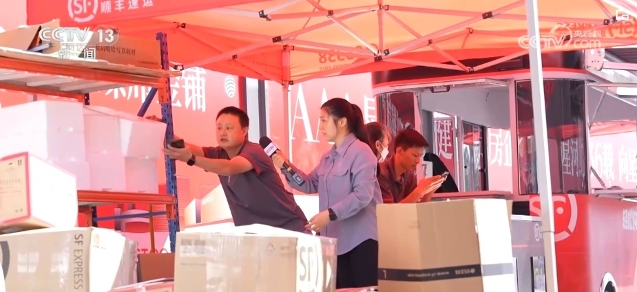 記者在現(xiàn)場發(fā)現(xiàn),一些毛絨玩具等商品被零散地放在快遞點(diǎn),并沒有及時(shí)被打包。快遞員說他從早上7時(shí)30分就提前過來,但包材很快就用完了,這是他沒想到的。