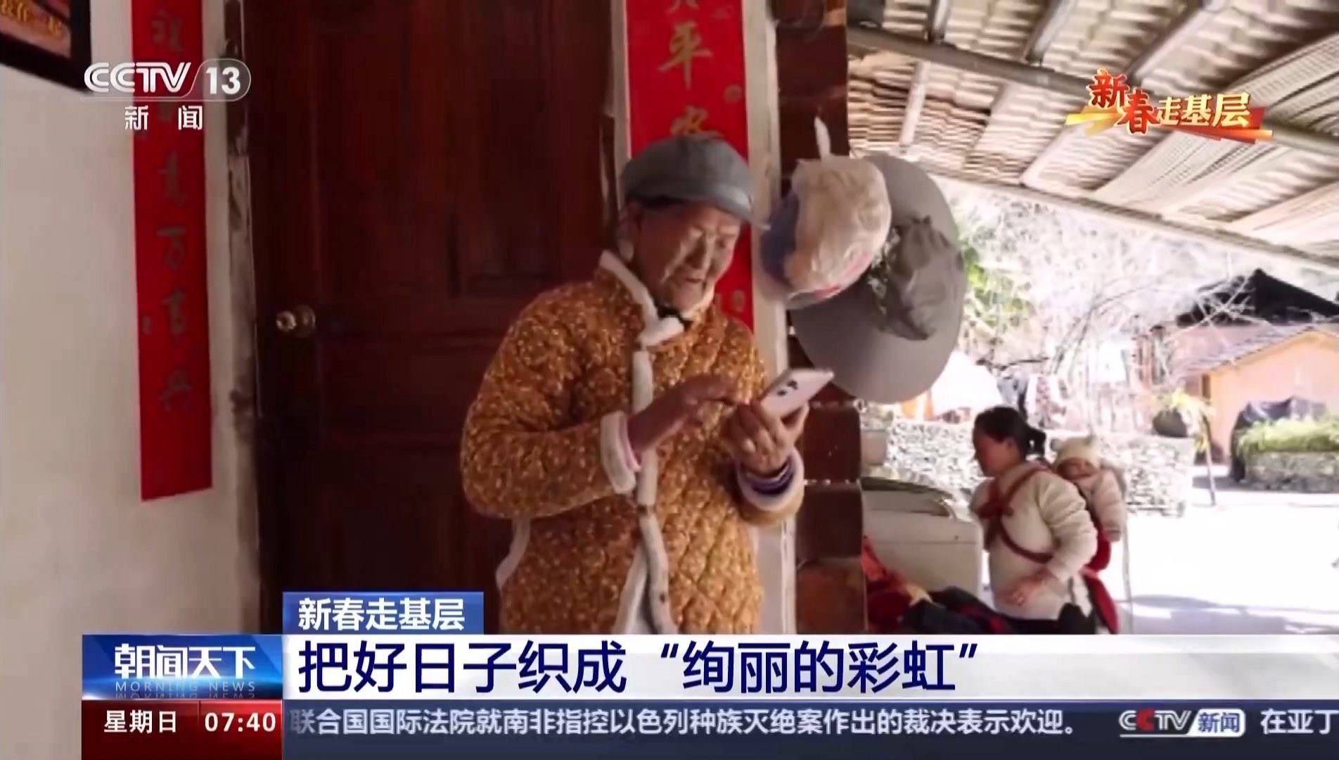 當記者找到她時,老奶奶正在熟練地玩手機。自從2022年,5G網(wǎng)絡(luò)覆蓋了獨龍江鄉(xiāng)的6個行政村后,李文仕奶奶除了務(wù)農(nóng)織布、唱歌跳舞,還培養(yǎng)了一個新的愛好,就是網(wǎng)上沖浪。