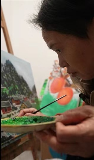 一支畫筆,一盒顏料,一張畫布,這幾乎是雙溪鎮(zhèn)能提供給王柳云的全部。那段時間,她走街串巷,畫山,畫水,畫民居,也“畫”心。憑著一種隱約的天賦和純天然的熱愛,大概過了三個月,王柳云已經(jīng)能大批量地賣畫。