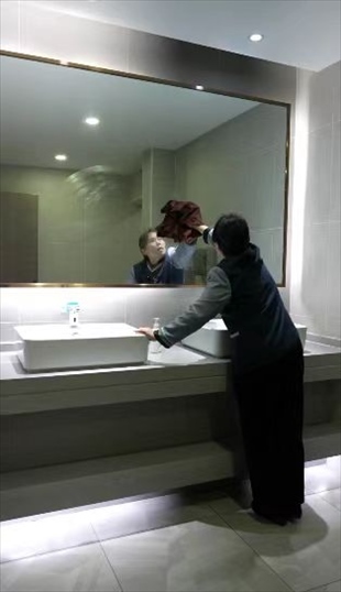 王柳云的保潔面積很大,整個寫字樓的十五層和十七層,地板、桌椅、窗戶、衛(wèi)生間,都是她的職責(zé)范圍?!昂芏嗳艘婚_完會,杯子、椅子、桌子要清理,還有窗子全部要擦干凈”,她形容自己的工作量“三四個人都干不完”,但她看中了這份工作留給她的一隅,隨便找個角落就可以寫字畫畫。