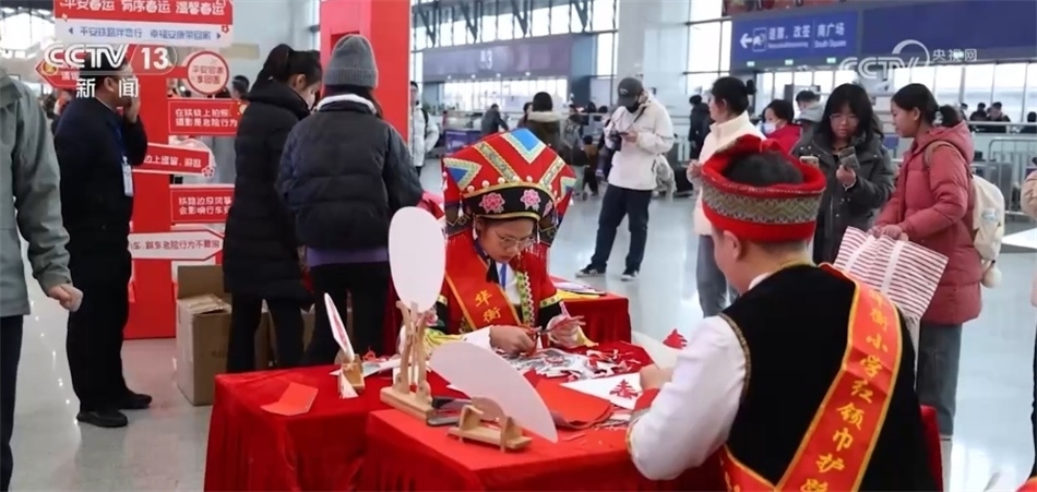 在哈爾濱、西安、上海、廣州各地的火車站,送“?!薄⒖扉W、簽名打卡、文藝表演、民俗文化展示等豐富多彩的活動(dòng)讓人們帶上一份好心情,踏上溫馨的團(tuán)圓之旅。