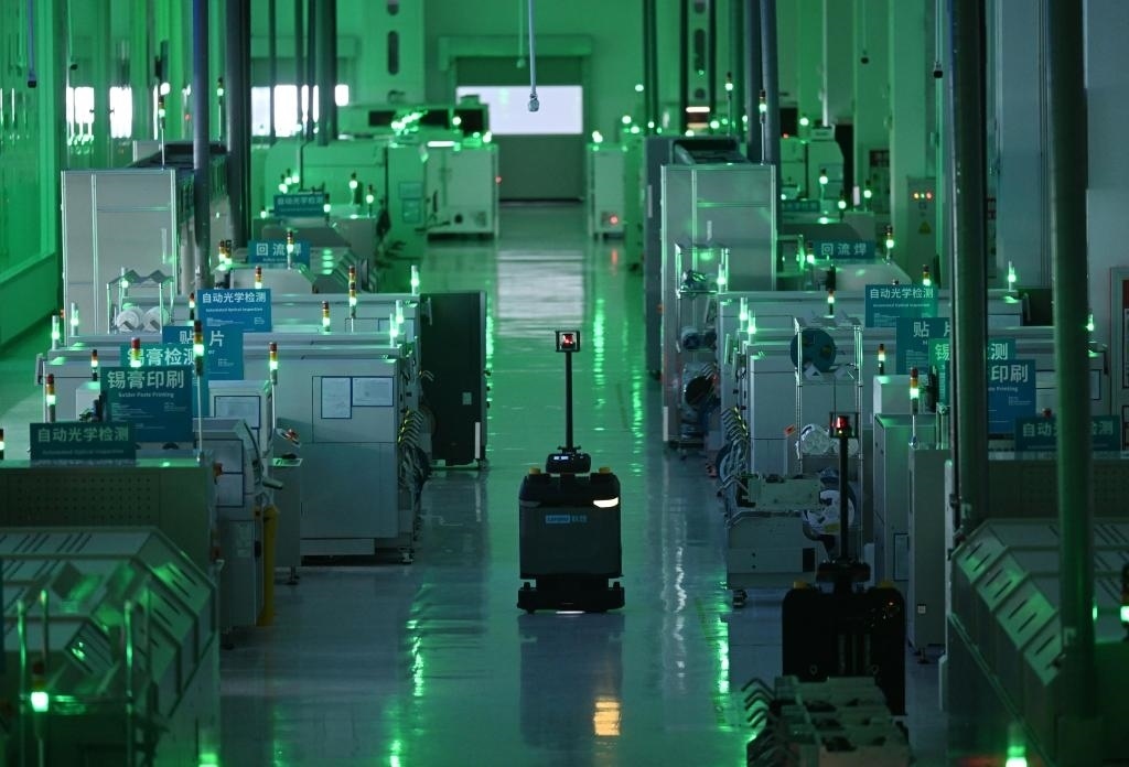 聯(lián)想創(chuàng)新產(chǎn)業(yè)基地(天津)負(fù)責(zé)人劉初春告訴記者,黑燈不是說完全沒有燈光,而是所用的光源,都是綠色環(huán)保的能源供應(yīng)?!拔覀儽M量減少人為干預(yù),我們完全用系統(tǒng),用我們的自動化設(shè)備,進(jìn)行智能地判斷和智能地處理。這樣一條生產(chǎn)線,現(xiàn)在真正地去干預(yù)這條線的,能夠控制在10個人,平均的自動化率已經(jīng)達(dá)到了80%以上”,他說。