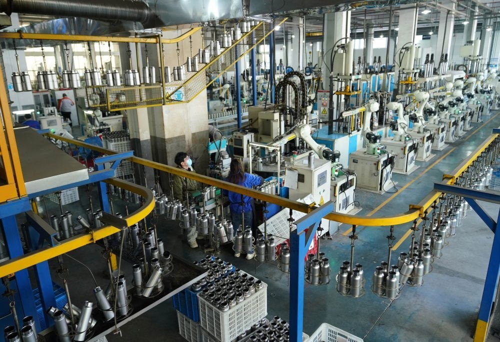 這是2023年12月21日在浙江省永康市一家保溫杯生產(chǎn)企業(yè)拍攝的自動(dòng)化生產(chǎn)流水線。新華社記者 韓傳號(hào) 攝