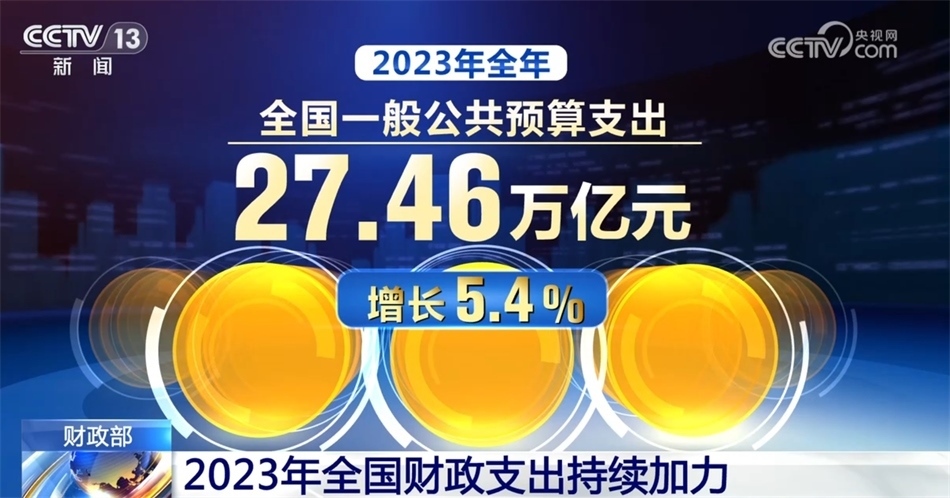 2023年,財(cái)政收入保持恢復(fù)性增長態(tài)勢,財(cái)政支出持續(xù)加力。具體來看,去年年初,財(cái)政赤字率按3%安排。同時(shí),為支持災(zāi)后恢復(fù)重建和提升防災(zāi)減災(zāi)救災(zāi)能力,去年四季度增發(fā)1萬億元國債,全部通過轉(zhuǎn)移支付安排給地方。2023年全年,全國一般公共預(yù)算支出27.46萬億元,增長5.4%。社會(huì)保障和就業(yè)、教育、科學(xué)技術(shù)、農(nóng)林水、城鄉(xiāng)社區(qū)等重點(diǎn)支出領(lǐng)域保障有力。