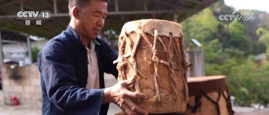 每逢佳節(jié)喜事,云南墨江縣克曼村的哈尼族村民們,都要敲響牛皮大鼓,跳起傳統(tǒng)舞蹈,表達喜悅之情。