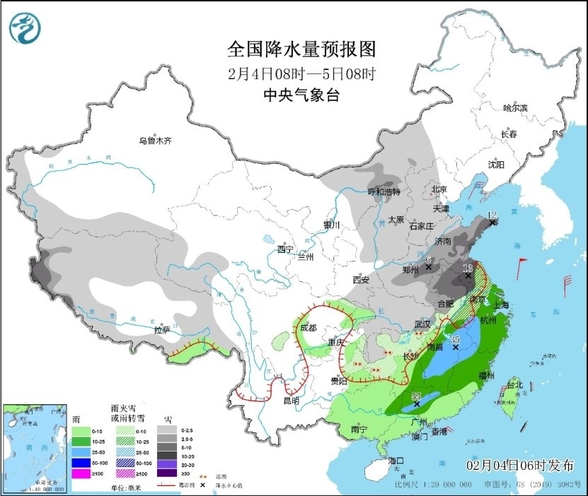 央視網(wǎng)消息:據(jù)中央氣象臺網(wǎng)站消息,昨日(2月3日),內(nèi)蒙古西部、甘肅中部、陜西中部、山西南部、河南中南部、安徽北部、江蘇北部、湖北中北部等地部分地區(qū)出現(xiàn)小到中雪,河南東南部、湖北中部等地局地大雪或暴雪;安徽中部、江蘇中部、湖北東部、湖南中北部、貴州東北部降雪或雨夾雪5~15毫米,局地降水量20~52毫米;貴州東部、湖南北部、湖北東部、安徽北部等地出現(xiàn)凍雨。