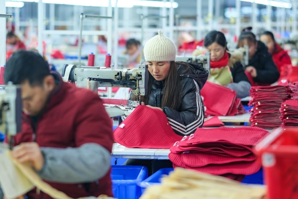 2024年1月18日,社區(qū)居民在湖南省湘西土家族苗族自治州鳳凰縣禾庫(kù)鎮(zhèn)紅安社區(qū)的鄉(xiāng)村振興就業(yè)車(chē)間工作。紅安社區(qū)是由易地搬遷安置區(qū)單獨(dú)成立的新社區(qū),也是湖南省最大的少數(shù)民族聚居安置區(qū)。新華社記者 張鋮 攝