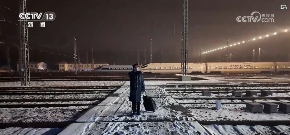 趁著茫茫夜色,動車組司機張洋從動車所出勤,執(zhí)行當天高鐵第一列“熱滑除冰車”的執(zhí)勤任務。
