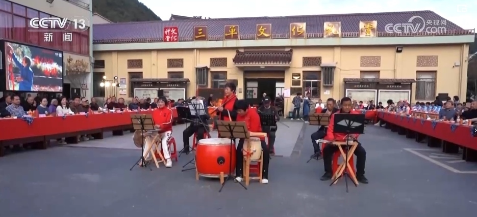 在浙江東陽市三單鄉(xiāng),“我們的村晚”這兩天火熱開場。一大早,村里民樂表演團(tuán)的成員就拿著鑼、抬著鼓開始排練了。