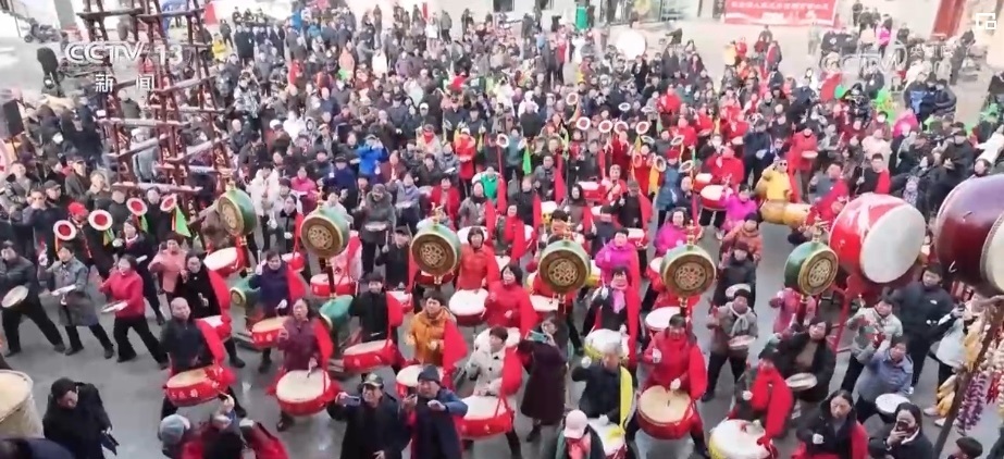 為了參加這次“村晚”,村里喜歡樂器的7個村民臨時組建了鑼鼓隊,每天積極練習(xí)。鼓聲一響,瞬間點燃了現(xiàn)場氣氛,上百人圍桌就餐看演出,年的味道就這樣來了。