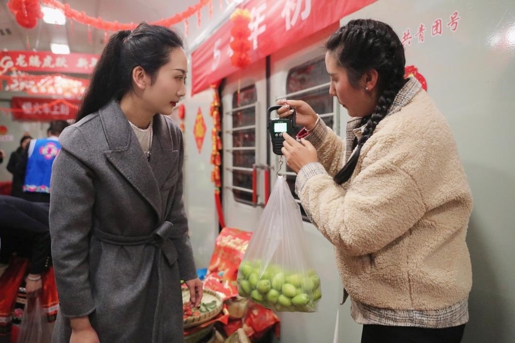云南昆明至元謀西“慢火車”上的年貨街。(中國鐵路昆明局集團(tuán)有限公司供圖)