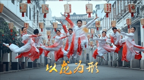 “有一條龍,藏在心里”,一招一式,以龍為形,以舞蹈之美勾畫武術之韻。武舞同源,形意相融,通過精巧的舞蹈造型設計,將龍形拳與現(xiàn)代舞相結合。龍形拳的剛勁有力與現(xiàn)代舞的優(yōu)雅美感同步上演。以意為神、以氣催勁、內(nèi)外合一,完美演繹出龍的身姿。